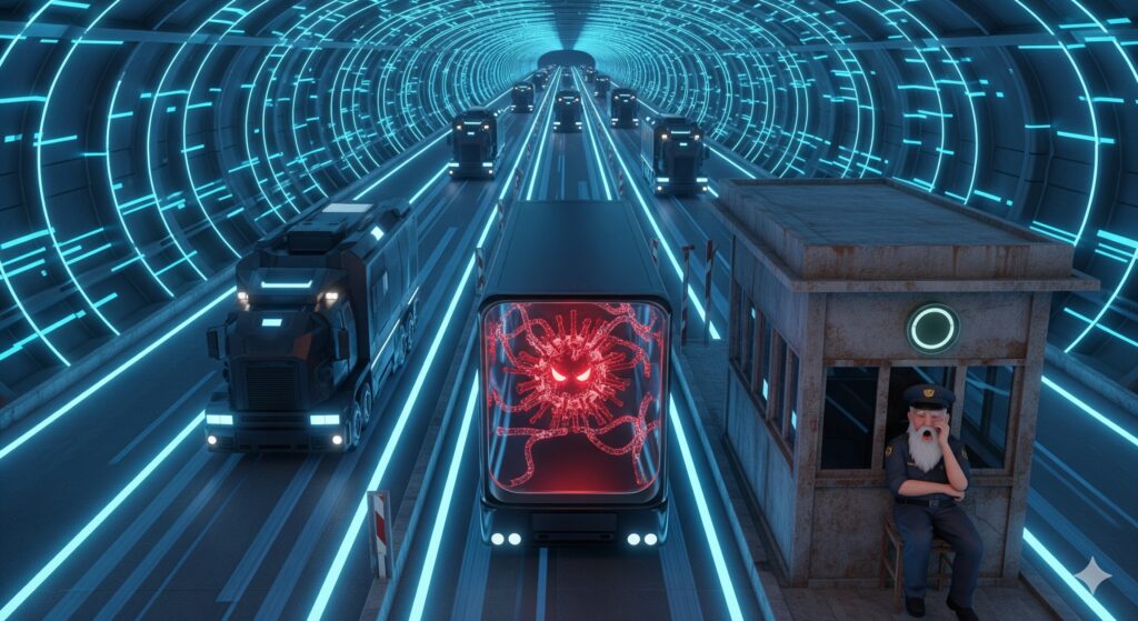 Por quê? Porque o jogo mudou. Os criminosos não tentam mais arrombar a porta da frente com um ataque barulhento. Eles se disfarçam. Eles entram pela “rodovia expressa” que seu firewall atual simplesmente não consegue inspecionar: o tráfego criptografado.
