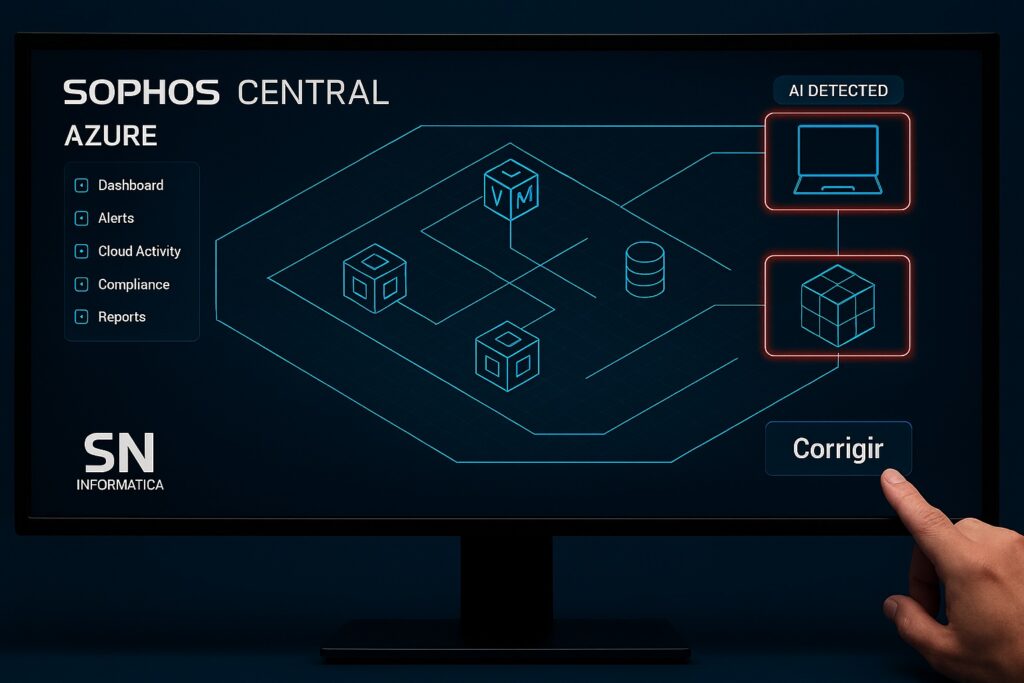 3. O Intérprete Universal (Integração e Unificação): O Sophos para Azure integra-se perfeitamente com o Sophos Central. Isso significa que os alertas e a visibilidade do seu ambiente Azure aparecem no mesmo painel onde você gerencia seus firewalls, seus endpoints e sua segurança de e-mail. Pela primeira vez, a sua província na Azure não é mais um território isolado; é parte integrante e visível do seu império unificado.