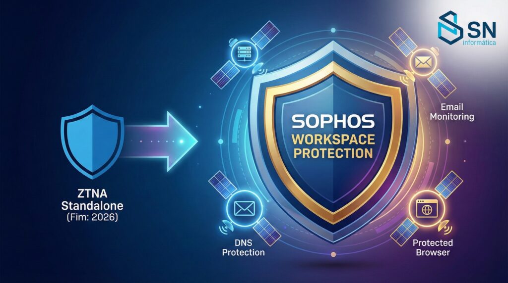 Como gestor, é vital estar ciente da evolução do ecossistema Sophos. A disponibilidade do ZTNA como produto standalone terminará entre final de abril e início de maio de 2026. Ele está sendo consolidado no Sophos Workspace Protection.